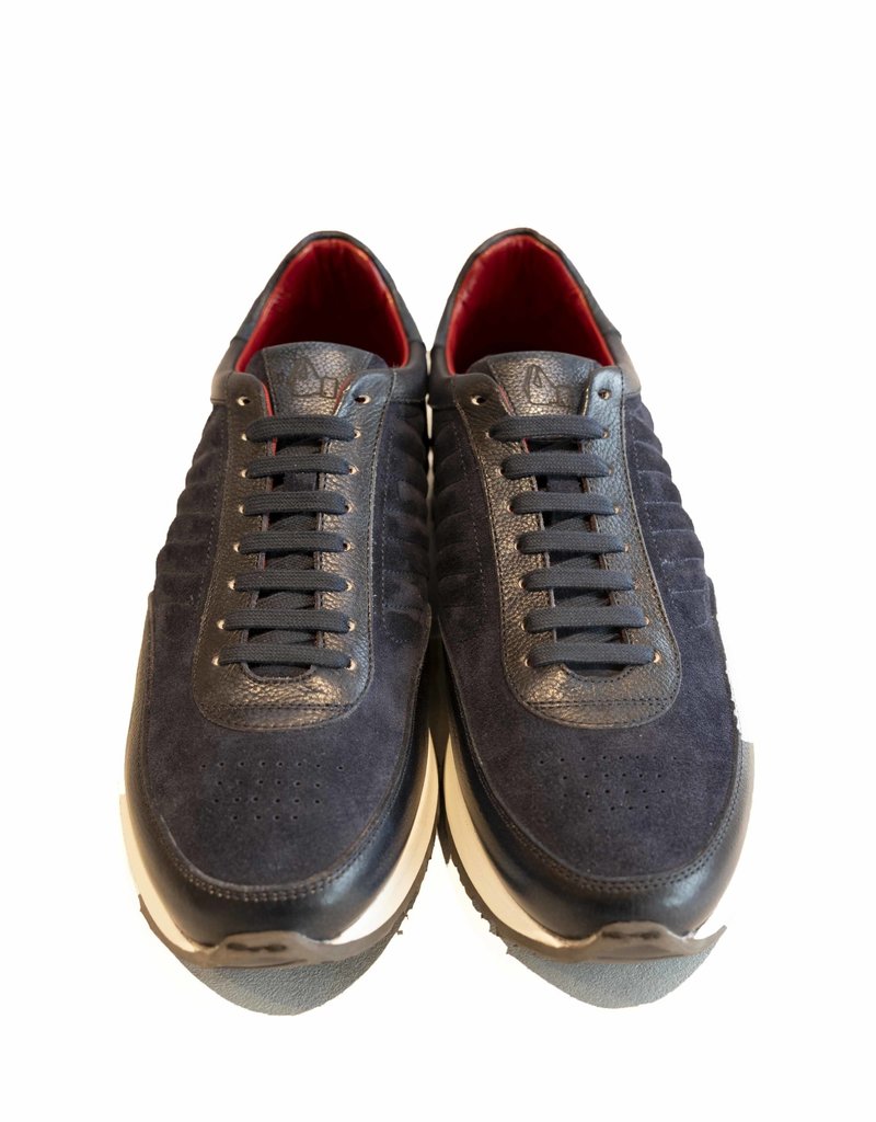 Inspired by auto racing functionality and aesthetic these dressy sneakers work well with today's casual style. Featuring leather cushioning on the vamp and the air intake metal grommets. These are combined with a modern trainer sole and luxury leather details, performance tread for comfort and support. In a soft suede and leather, this men’s dress sneaker is a sophisticated compliment to your neutrals and casual looks.