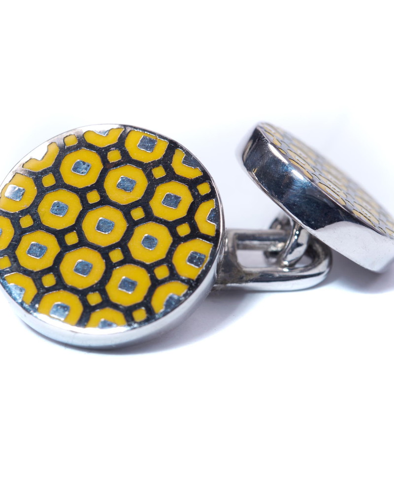 Yellow & Black Enamel Double-sided Silver Cufflinks