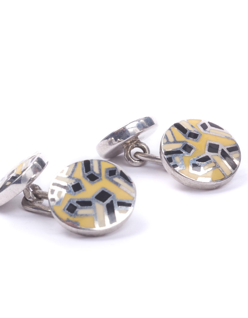 Yellow & Black Enamel Double-sided Silver Cufflinks
